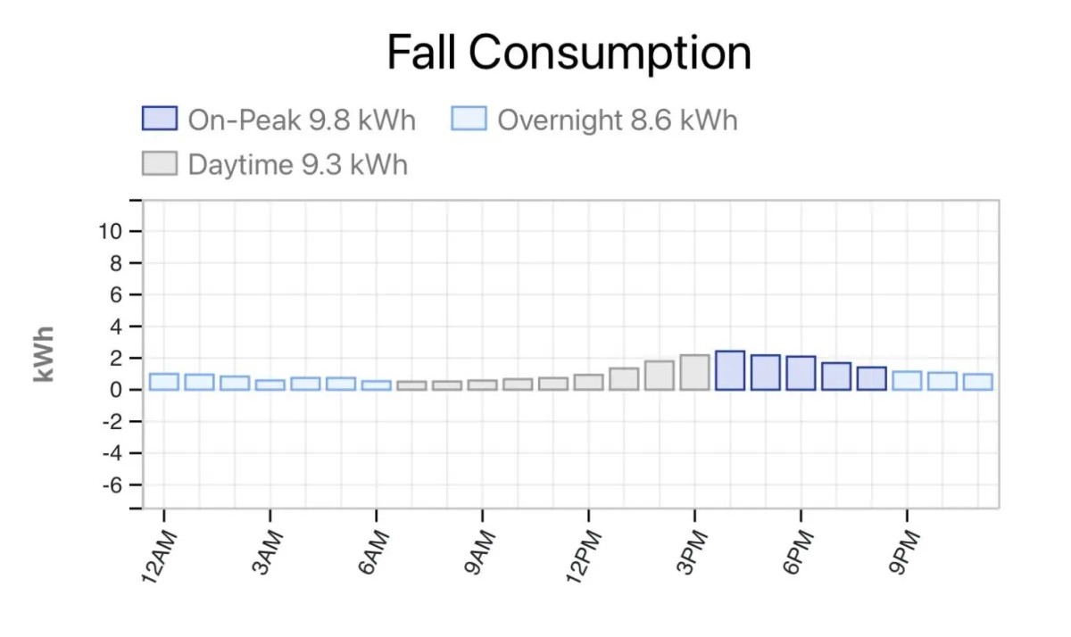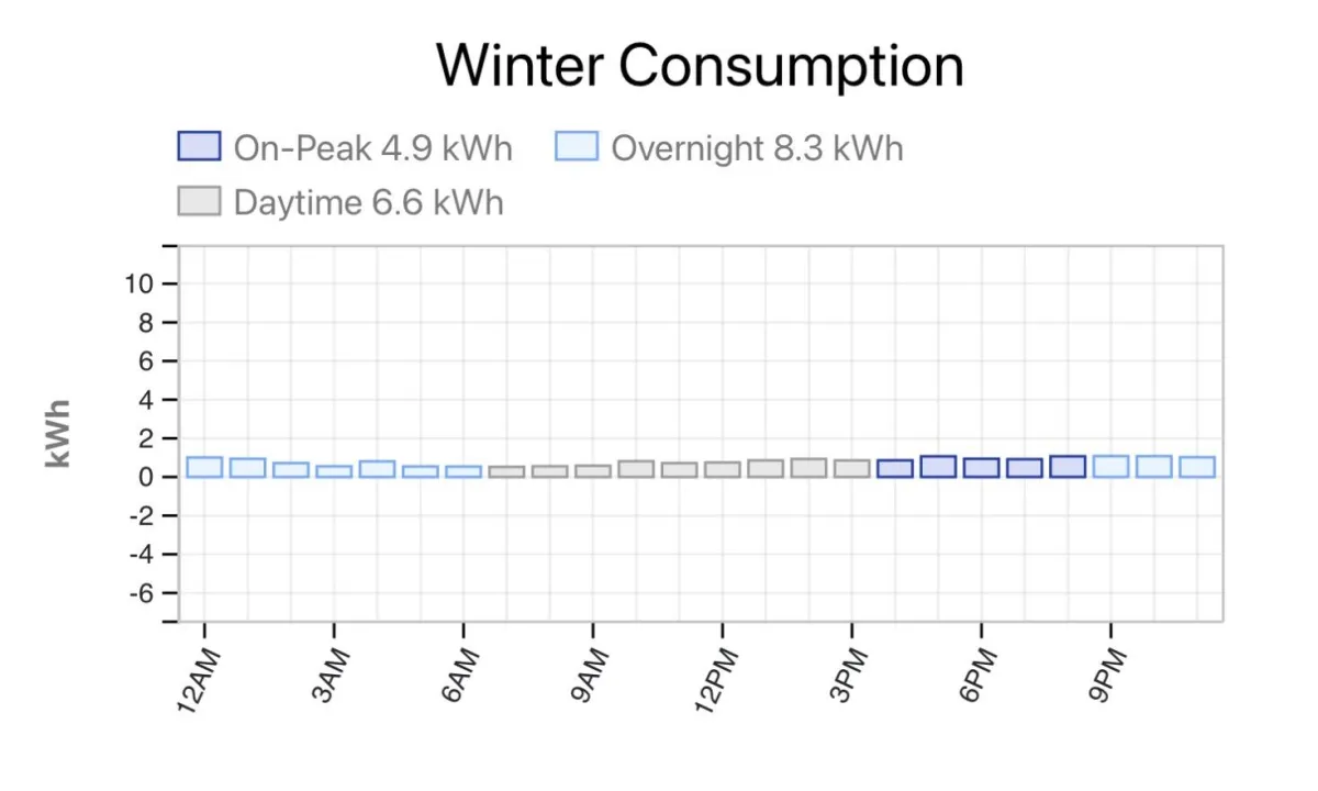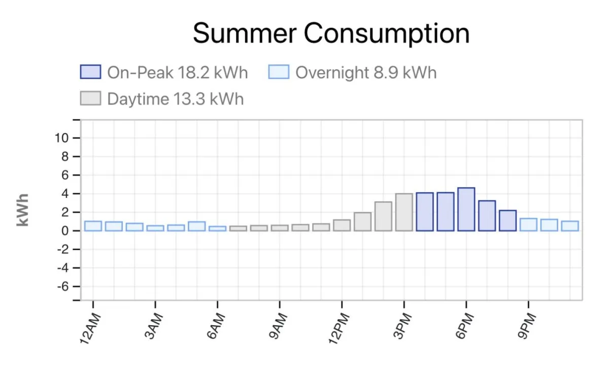 The reason for two Tesla Powerwall 3s is because their summer usage is 18.2kWh for peak use and 8.9kWh used overnight. This totals 27.1kWh of power storage needed.